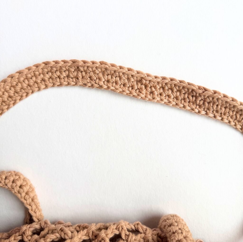 Rnd 13–27: Ch 5, sl st into the next ch-5 loop (working around the chain, not into it). Repeat until the bag measures approx. 15 inches (38cm) or your desired height.
